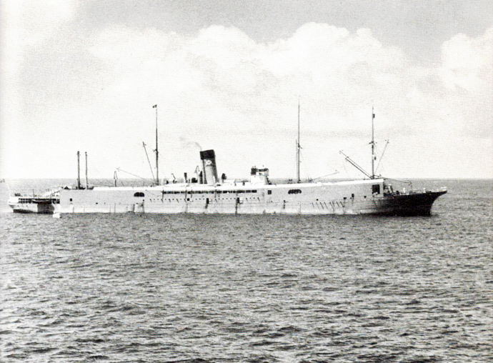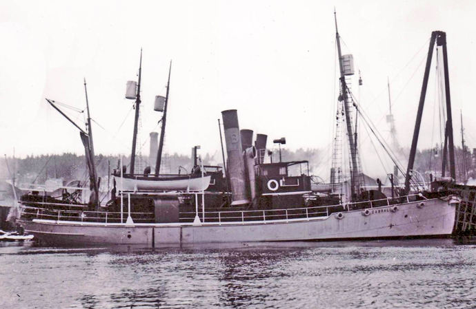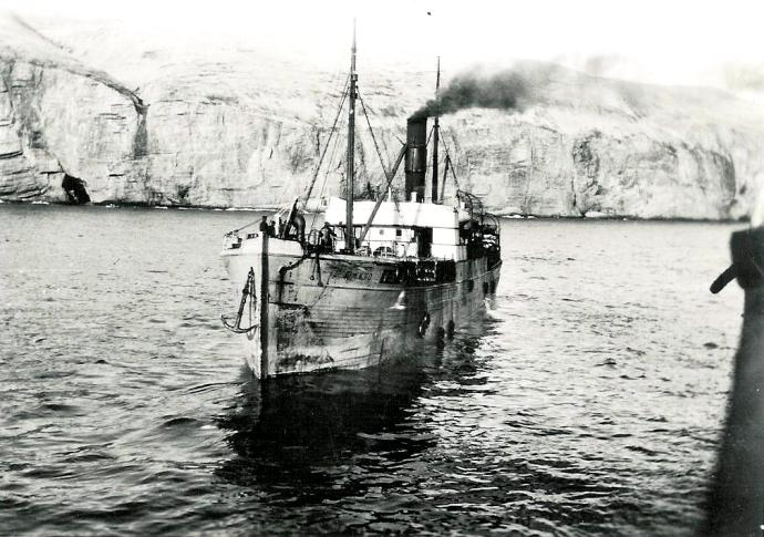 Fryseriskipet «ALEKTO» på feltet like ved Bjørnøya i 1930. Skipet forliste som FRYSER I ved Jan Mayen i 1934.