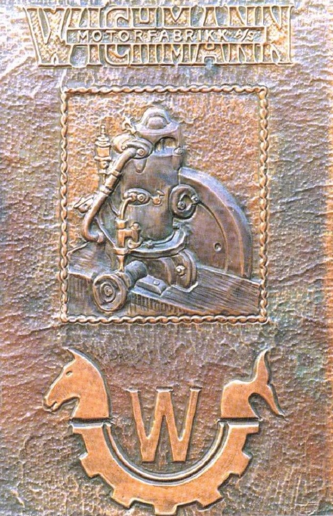 | Den første Wichmann-motoren blev innstalert i båt som fremdriftsmotor i 1903. Motoren blev konstruert og bygget på Rubbestadneset i Sunhordland av sønnene til Martinus Haldorsen, Haldor, Lars og Benjamin. Motor fabrikasjonen startet opp i en kjeller langt oppe på land. Den første motoren var en en-cylindret motor på 2 Hk, som i dag står på Teknisk Museum i Oslo. Bilde av kobberstikket viser motoren. |