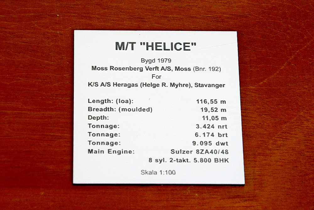 | Tonnasje: 9.095 tdw, 6.174 brt, 3.424 nrt. Dimensjoner: Loa: 116,6m-Lbp: 107,2m-B: 19,5m-D: 11,1m-Dypg.: 8,810m. Framdrift: 1 dieselmotor, Sulzer 8ZA40/48, 2-takt/enkeltv., 8-sylinder, syl. dim.: 400 x 480 mm. 5.800 BHK. Bygget av Cie. de Constr. Mécaniques Procédés Sulzer, Nantes, Frankrike. 1978 Kjølstrukket i april. Bygget som HELICE av Moss Rosenberg Verft, Moss (Bygg nr. 192) for K/S A/S Heragas (Helge R. Myhre), Stavanger. 1978 Sjøsatt 20/03, levert 18/06. 1980 Managers omdøpt til Rederiet Helge R. Myhre A/S, Stavanger i januar. 1983 Rederiet flyttet til Oslo i februar. Skipene registrert i Stavanger. 1987 Registrert i Stavanger-NIS fra juli. 1988 Solgt i september til Energy Shipping & Trading Co. S.A. (Naftomar Shipping & Trading So. Ltd), Panama. Omdøpt til CHEM ENERGY. | 1990 Solgt i september til Labogas XV K/S (A/S Laboremus), Oslo-NIS. Omdøpt til NORGAS ENERGY. 1991 Skaugen Marine AS, Oslo-NIS ble managers i april. Ny motor installert, Wärtsila. 4-takt/enkltv., 6-sylinder, syl. dim.: 460 x 580 mm. 5.611 BHK ved 514 o. min. Bygget av AB Wärtsila Diesel OY, Turku, Finland. 1992 A/S Norwegian Gas Carriers, Oslo-NIS ble managers i desember. 1994 Overført til Norwegian Gas Carries Ltd, Hamilton, Bermuda (Norwegian Gas Carriers AS), Oslo-NIS i juni. Morits Skaugen jr., Oslo-NIS ble managers i august. 2000 Solgt i mars til Norgas Ltd (Norgas Carriers A/S, Oslo), Monrovia, Liberia. 2003 Registrert i Hong Kong, China 24/02. 2012 Omdøpt til ENERGY 01/02. Ankom 13/02 til Alang, India og satt på land 20/02 for hugging ved Crown Steel Co. |